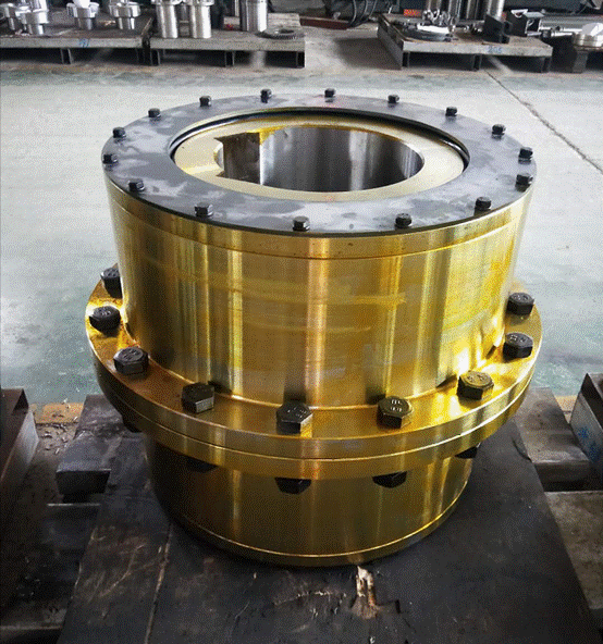 (一)天碩聯軸器產品介紹:大轉矩鼓形齒式聯軸器承載沖擊性能好,但齒面接觸應力和齒根彎曲疲勞強度要求高,如果我們采取特殊結構、特殊材料、特殊工藝,那么該聯軸器就能夠滿足大直徑軋管機的要求。隨著我國經濟的發展,大直徑軋管機需求增加,其主傳動使用聯軸器的要求也越來越高,滿足該要求的聯軸器有十字式萬向聯軸器和大轉矩鼓形齒式聯軸器,其中十字式萬向聯軸器轉矩可以達到,但承載沖擊性能差、壽命短,這是一個很大的缺點;目前國內軋機用的標準聯軸器無法滿足要求,只達到需求轉遞轉矩的1/2~1/3,國外聯軸器專業制造商可以滿足要求,但由于它采用專門的技術,再加上制造難度大,所以價格特別昂貴。一臺軋管機需要10套左右,再加上備件外購費用很大。天碩聯軸器廠根據客戶需求研制的各種鼓形齒聯軸器已能滿足國內各廠家的需求。