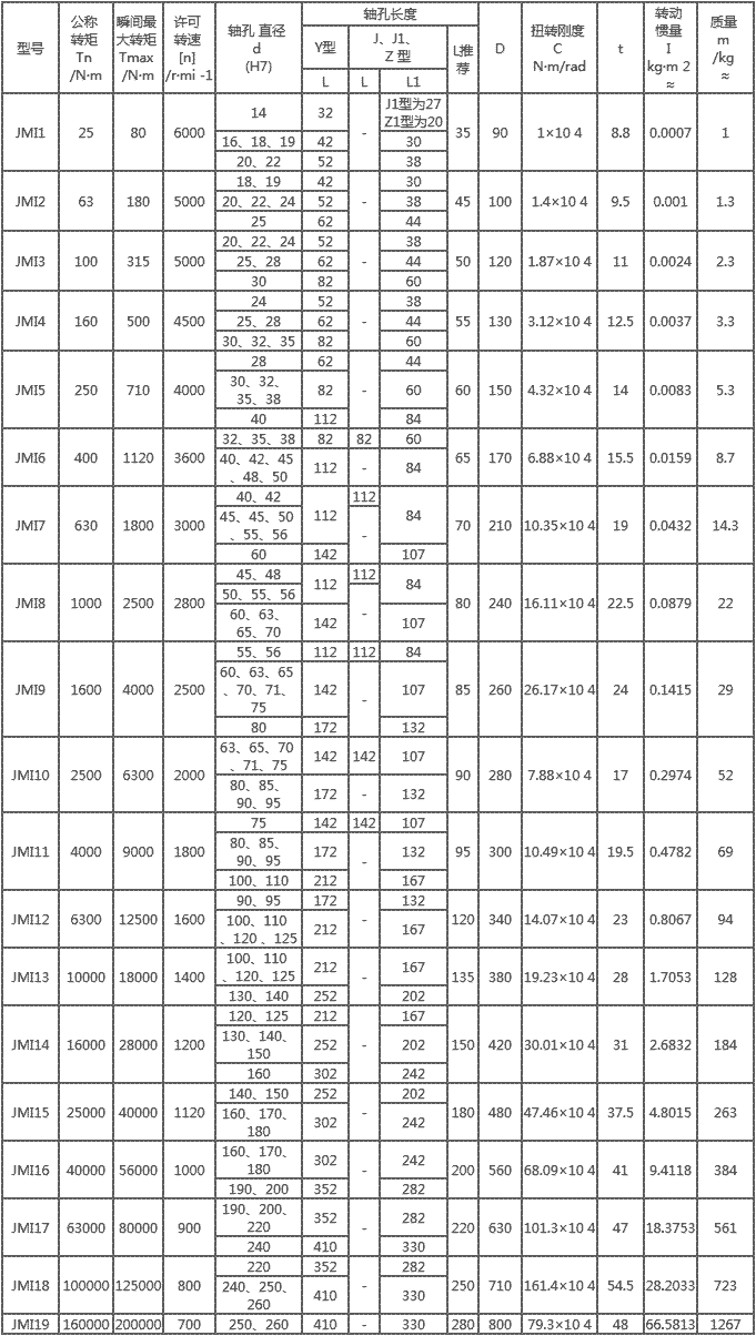 JMI型膜片聯(lián)軸器基本參數(shù)和主要尺寸 mm(JB/T 9147-1999)
