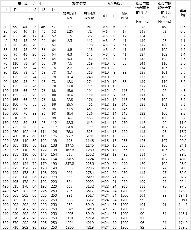 Z17A型鎖緊聯結盤的基本尺寸 (按JB/T 7934-1999生產)