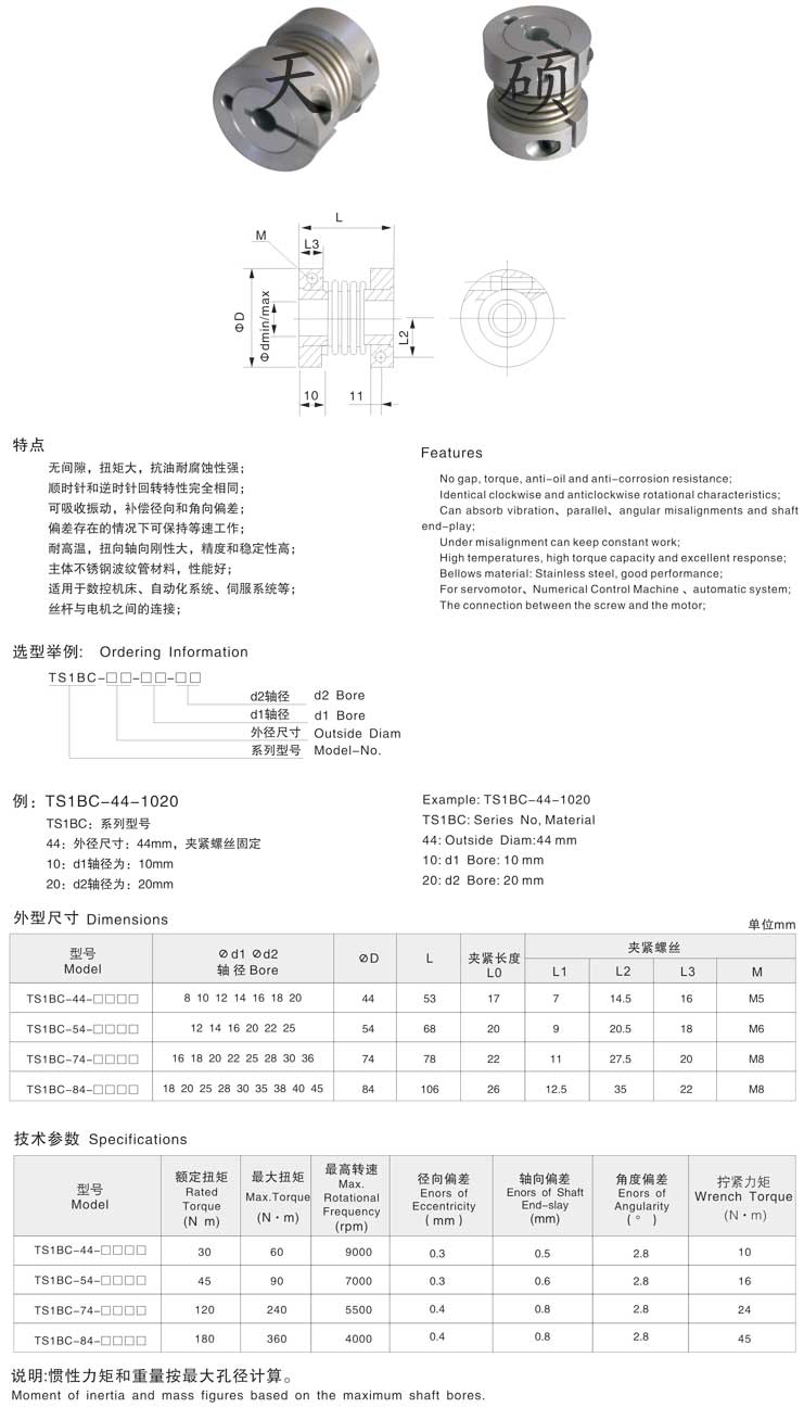 (2)波紋管聯軸器體積小巧,轉動慣量極低;