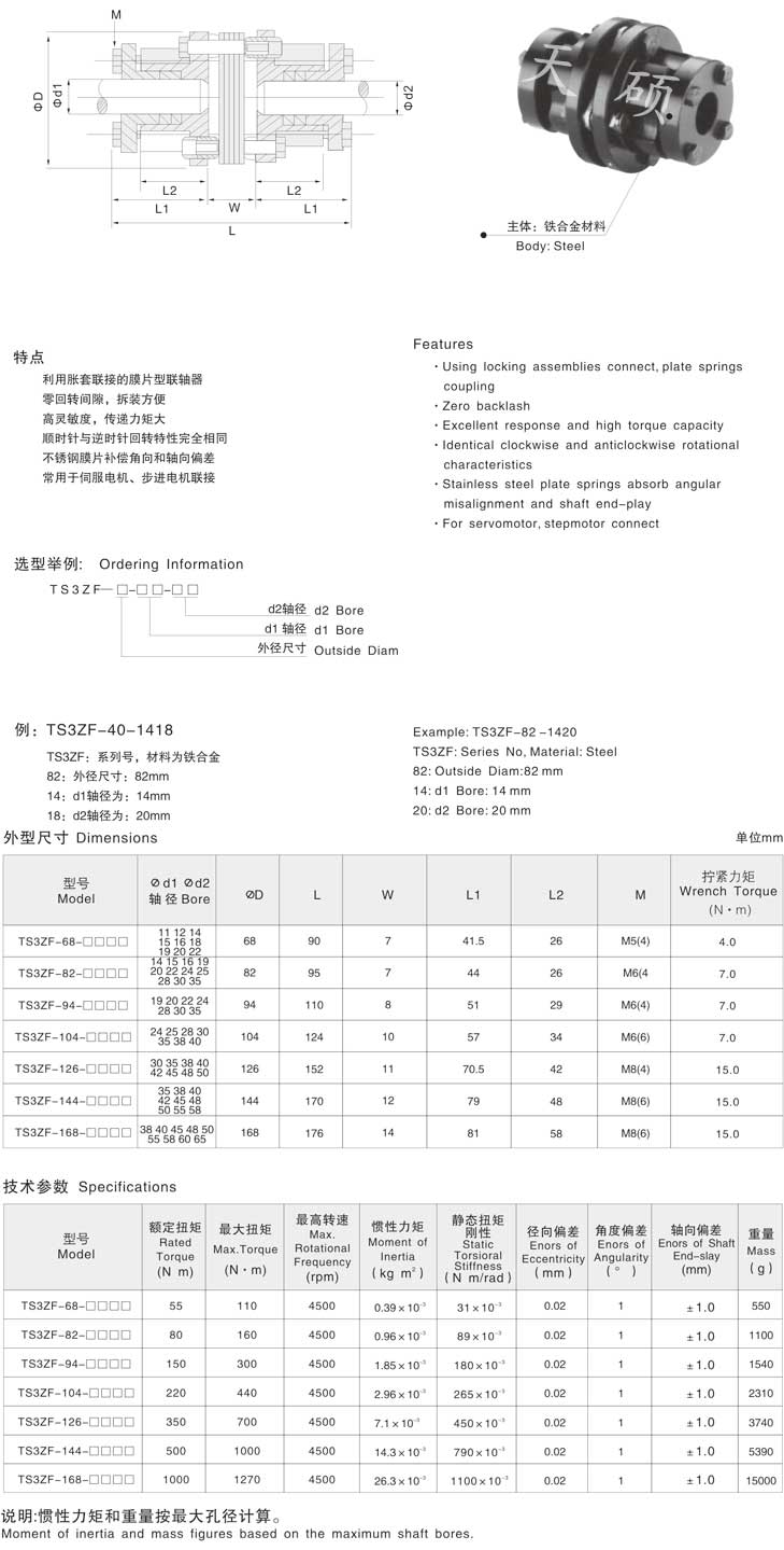 TS3ZF脹套法蘭膜片聯軸器產品介紹: