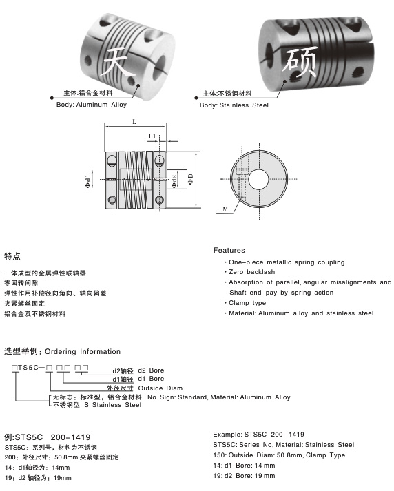 2.天碩精密彈性聯(lián)軸器夾緊螺絲固定:利用內(nèi)六角螺栓擰緊的力量,使狹縫收縮,而將軸心緊緊夾持住。這種方式固定及拆卸方便,而且不會(huì)造成軸心的損壞,是一種很常用的固定方式。